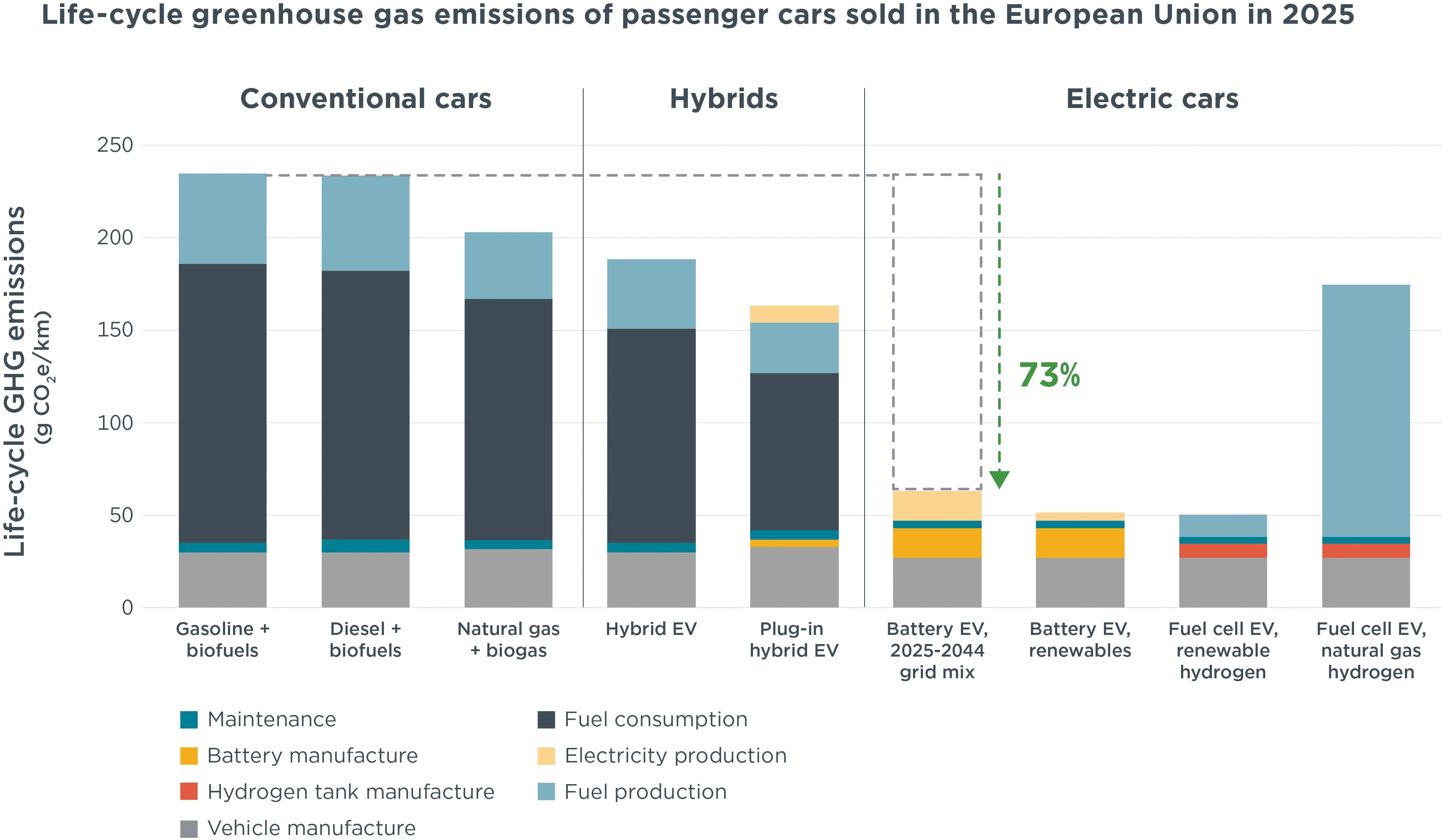 Un nuovo studio dell'ICCT conferma il ruolo di primo piano delle auto completamente elettriche nella protezione del clima. Nel loro intero ciclo di vita, queste generano in Europa, in media, il 73% in meno di emissioni di gas serra rispetto ad auto a benzina comparabili. Il vantaggio climatico sta crescendo più velocemente di quanto si presupponesse, trainato dall'espansione delle energie rinnovabili.Fonte: International Council on Clean Transportation Europe gemeinnützige GmbHIl bilancio climatico migliora più velocemente del previstoSecondo l'ultimo studio dell'ICCT, i veicoli completamente elettrici hanno performance significativamente migliori di tutti gli altri tipi di propulsione nel loro intero ciclo di vita – dalla produzione, all'utilizzo, fino al riciclo. Rispetto al 2021, il vantaggio climatico dei veicoli elettrici a batteria è aumentato di 24 punti percentuali. Le ragioni principali sono la rapida espansione delle energie rinnovabili nel mix elettrico europeo e l'alta effi