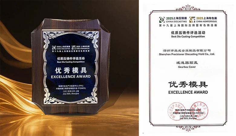 In occasione della 19ª edizione della Fiera Internazionale della Pressofusione e della Fondazione di Leghe Non Ferrose di Shanghai (CHINA DIECASTING), tenutasi a luglio 2025, Precisioner e Hongte Guangdong Precision Technology (Zhaoqing) Co., Ltd. hanno unito le loro forze. La loro soluzione integrale per lo stampo di pressofusione del "coperchio della scatola del riduttore", sviluppata congiuntamente, ha superato la rigorosa valutazione del comitato di esperti ed è stata premiata con il riconoscimento "Stampo Eccellente" nell'ambito della selezione dei migliori getti della fiera!